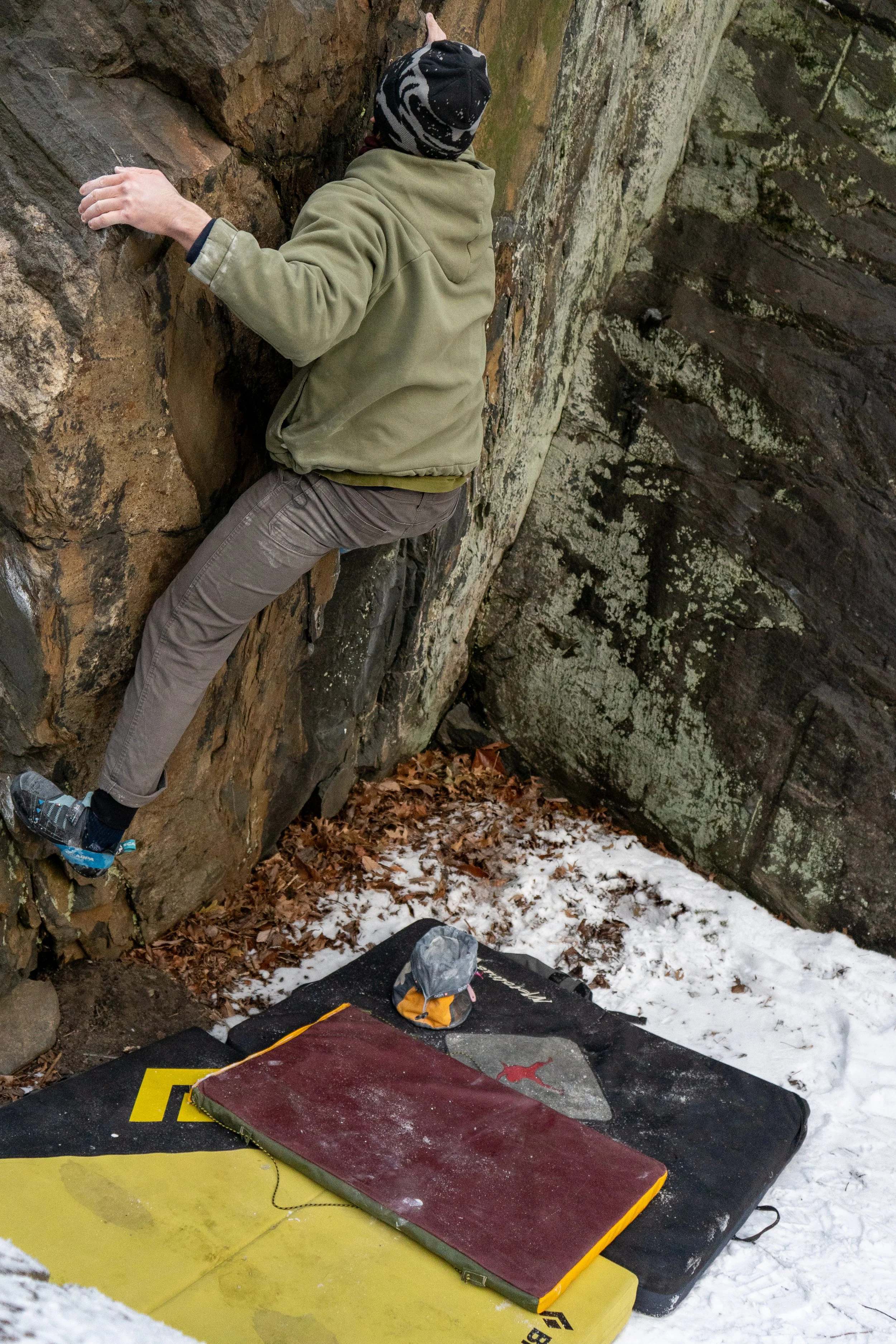 The Hygge Slider is a versatile crash pad accessory that seamlessly transforms from a protective slider pad into a comfortable seat for resting between attempts. Inspired by Danish reductionist design, their unique cultural concept of hygge, and Japanese origami principles, it features elegant folding mechanics, making it highly portable and easy to integrate within a larger crash pad. Designed for durability and comfort, it enhances both safety and relaxation at the crag or gym, offering climbers a thoughtfully crafted solution for movement and rest.